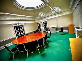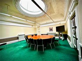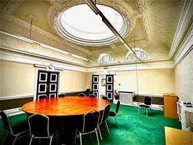 This space is perfect for smaller team meetings and interviews with a capacity of 16. It has a domed ceiling which floods the room with natural daylight. There is one big round table that can be expanded to fit 16 or even made smaller for the samller parties that may want to attend.